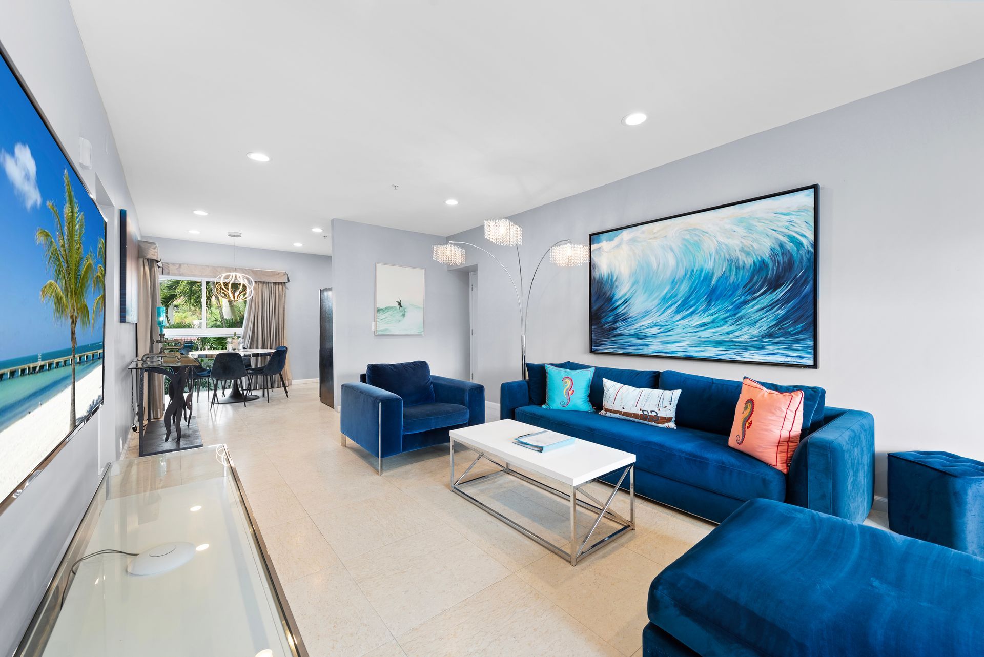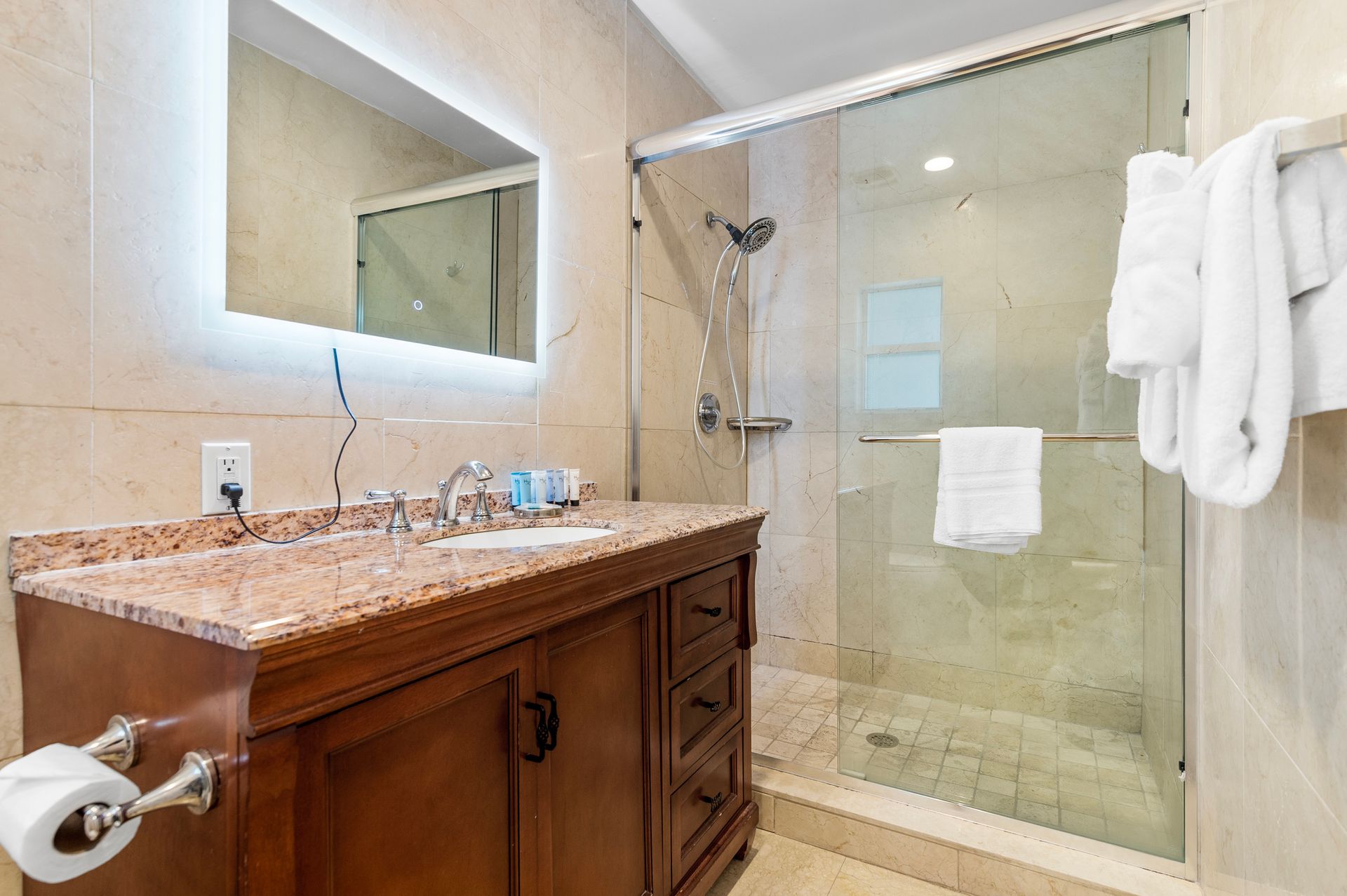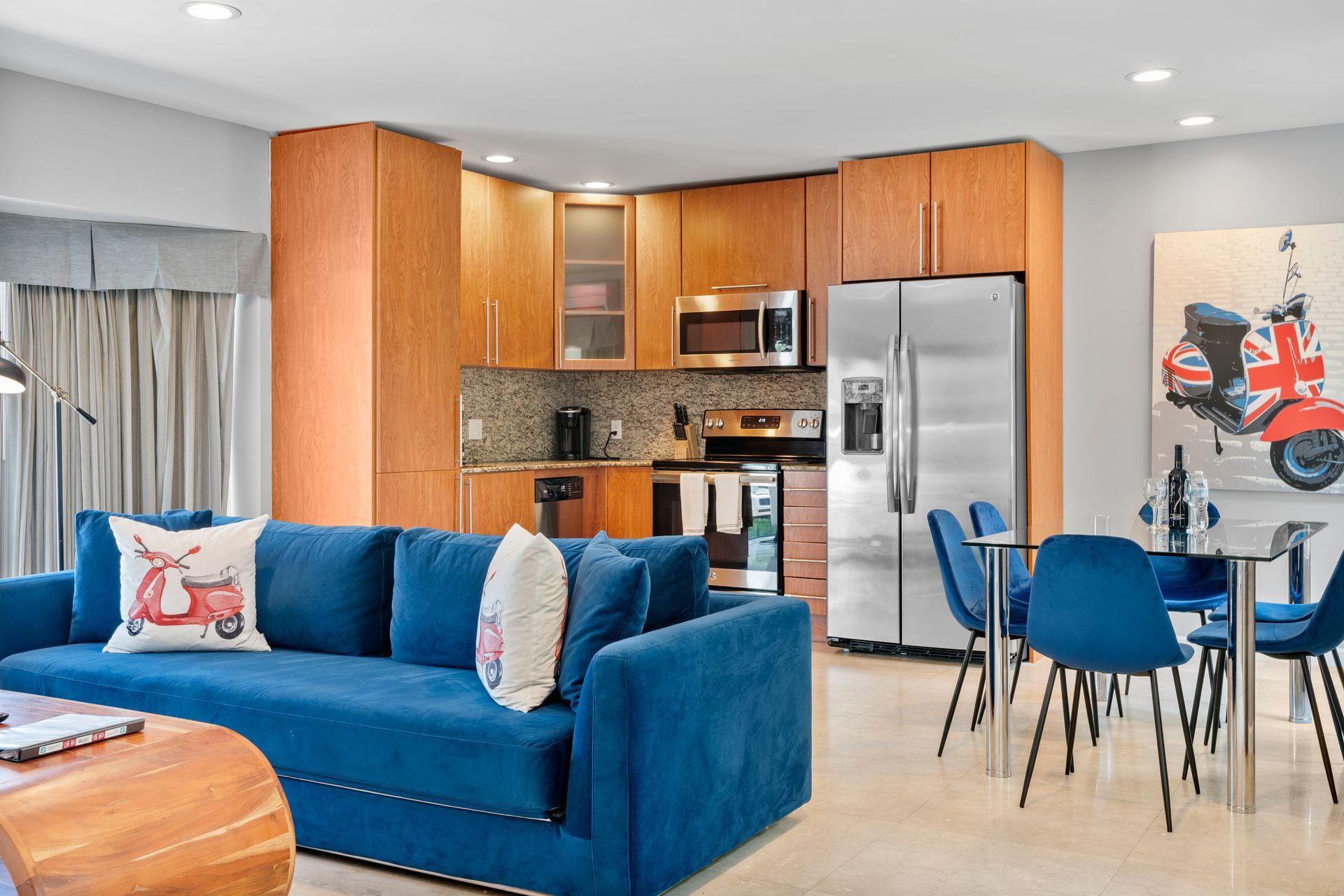 We are renovated with designer inspired Interiors, Impact windows with sheer draping porcelain flooring throughout the entire apartment. Espresso color wood kitchen cabinets with cream quartz countertop and beautiful backsplash. We also provided in our units top of the line stainless appliances, all refrigerators are equipped with water filters and ice makers for your needs such as cooking etc and all apartments have full ranges of microwave ovens and utensils. All of our bedrooms include tv’s, utmost comfortable mattress and 2 nightstands. All living rooms have pull out sofa, Tv’s and custom designed furniture. The bathroom are luxurious including showers with glass enclosure.