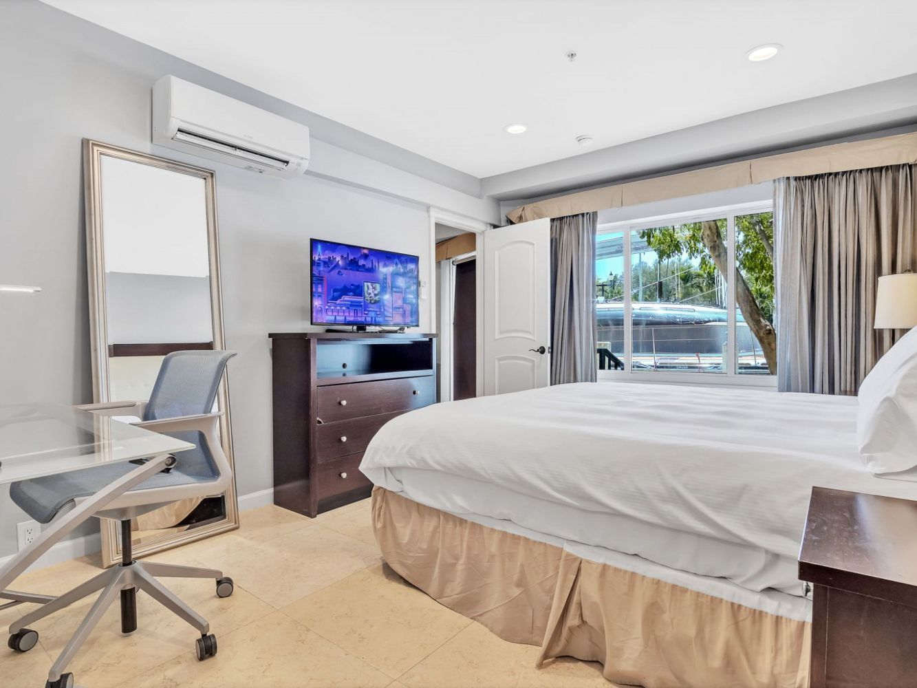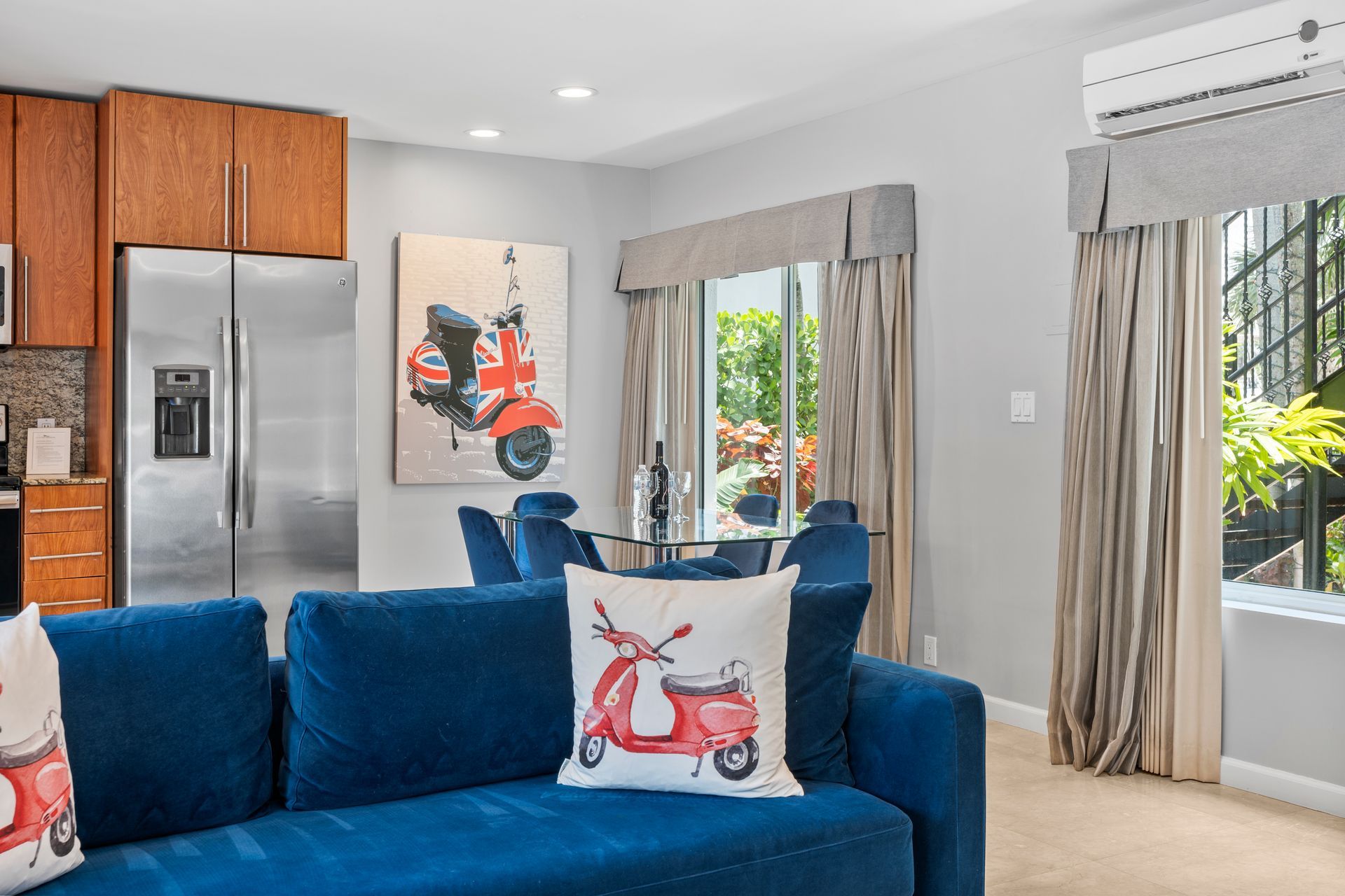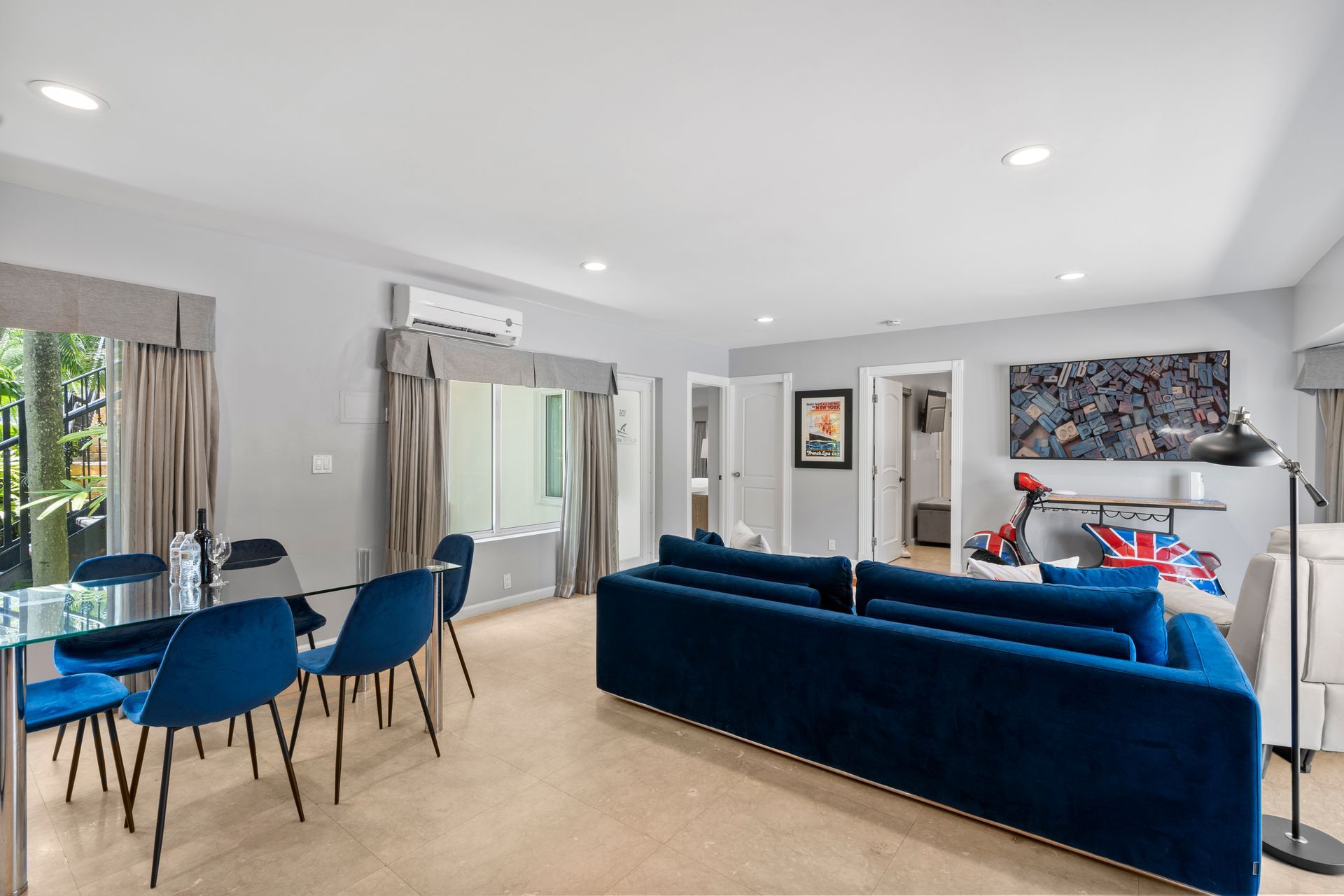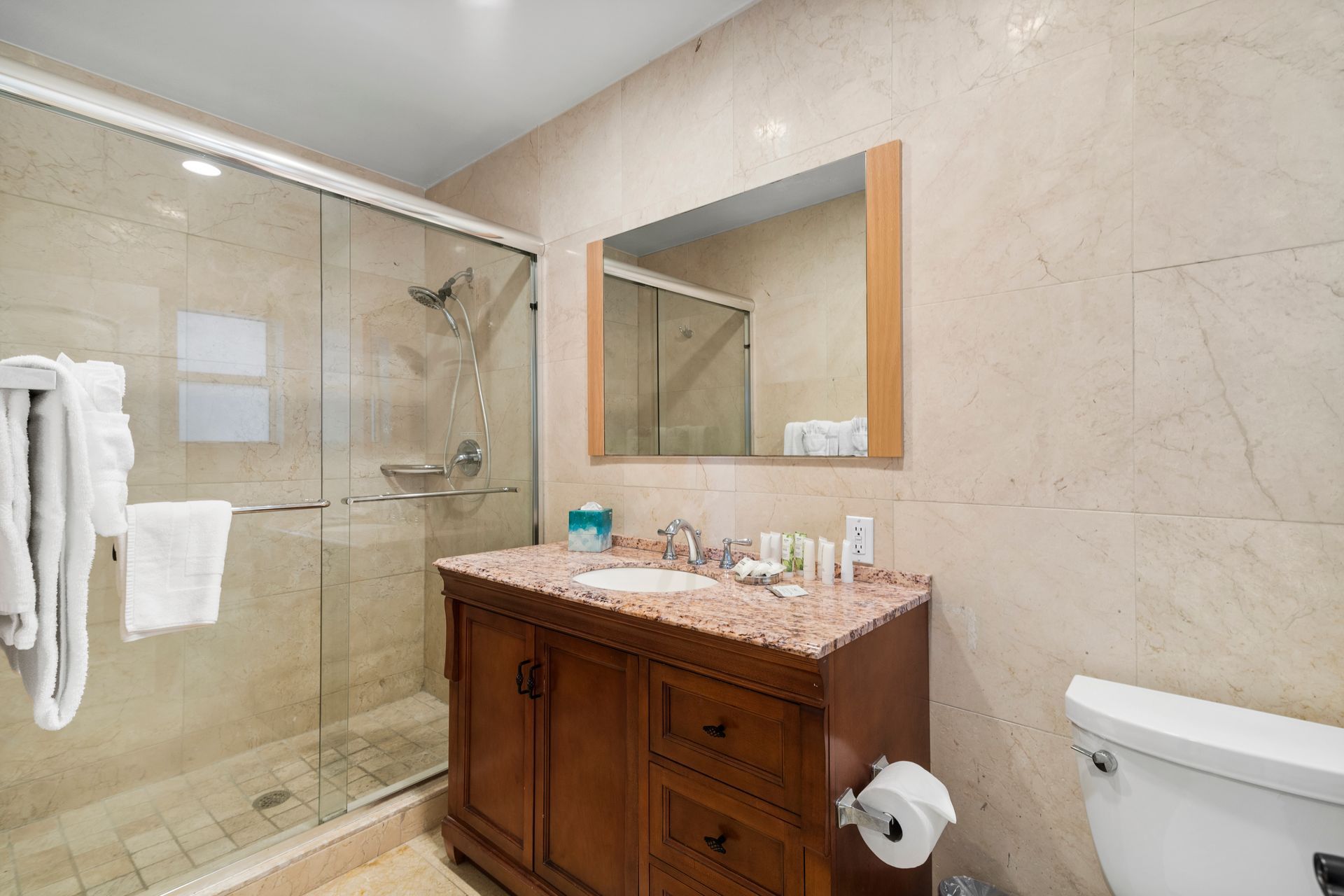 We are renovated with designer inspired Interiors, Impact windows with sheer draping porcelain flooring throughout the entire apartment. Espresso color wood kitchen cabinets with cream quartz countertop and beautiful backsplash. We also provided in our units top of the line stainless appliances, all refrigerators are equipped with water filters and ice makers for your needs such as cooking etc and all apartments have full ranges of microwave ovens and utensils. All of our bedrooms include tv’s, utmost comfortable mattress and 2 nightstands. All living rooms have pull out sofa, Tv’s and custom designed furniture. The bathroom are luxurious including showers with glass enclosure.